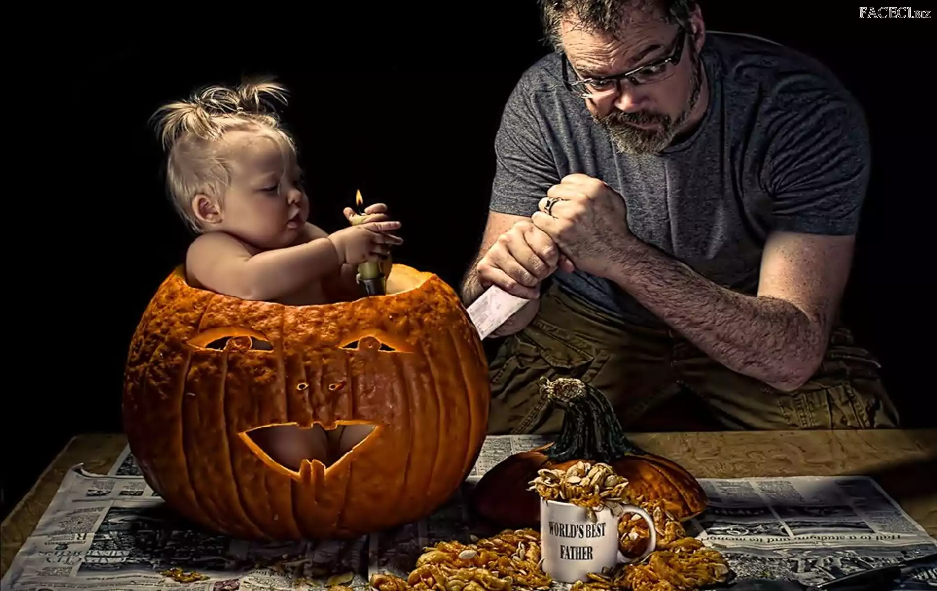Dziecko, Mężczyzna, Dynia - faceci.biz